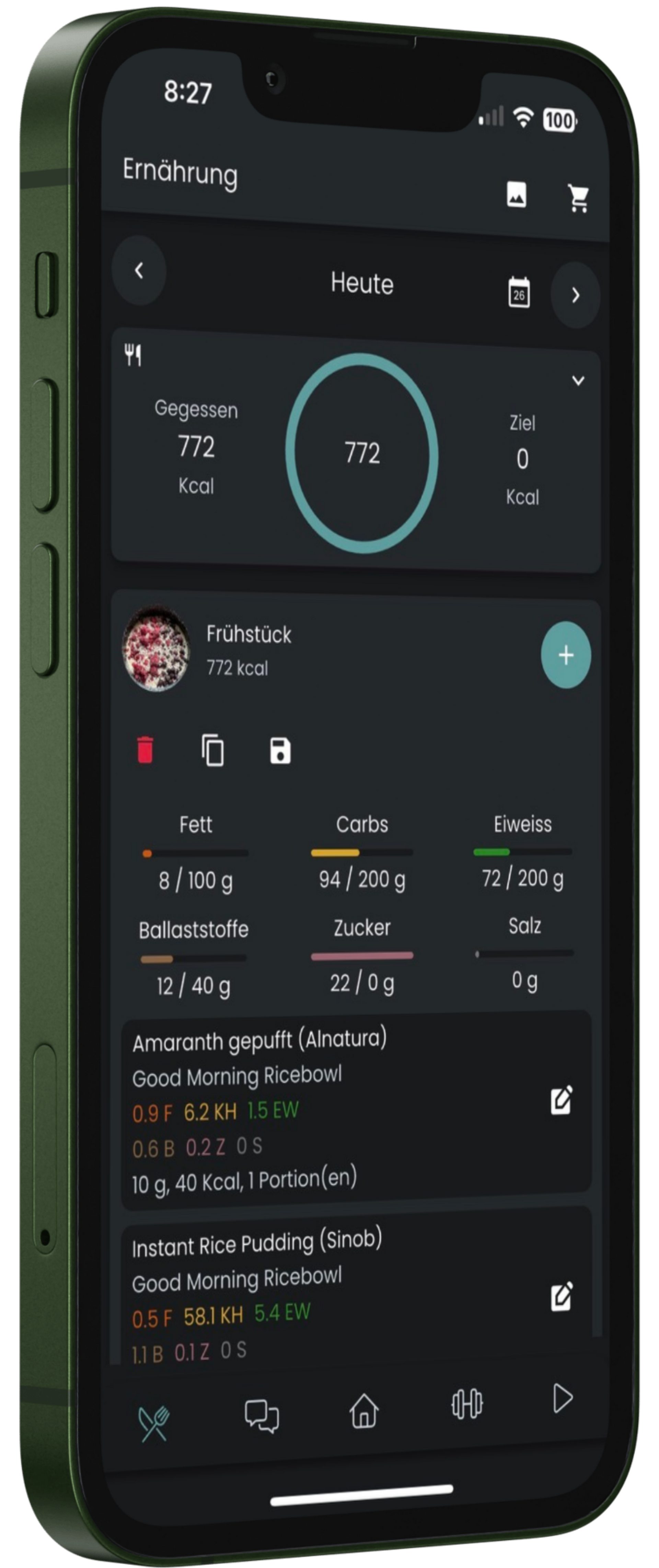 Zudem stehen Dir in der App über 450 leckere Rezepte zur Verfügung und nahezu alle in Deutschland erhältlichen Produkte sind hier gelistet - inklusive Nährstoffe.